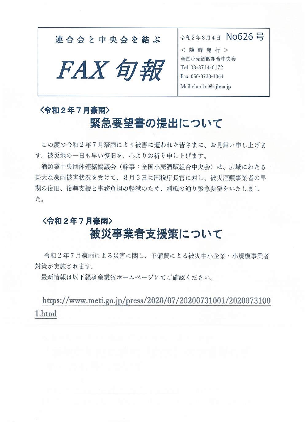 FAX旬報No626号 緊急要望書の提出及び被災事業者支援策について 2020年8月12日