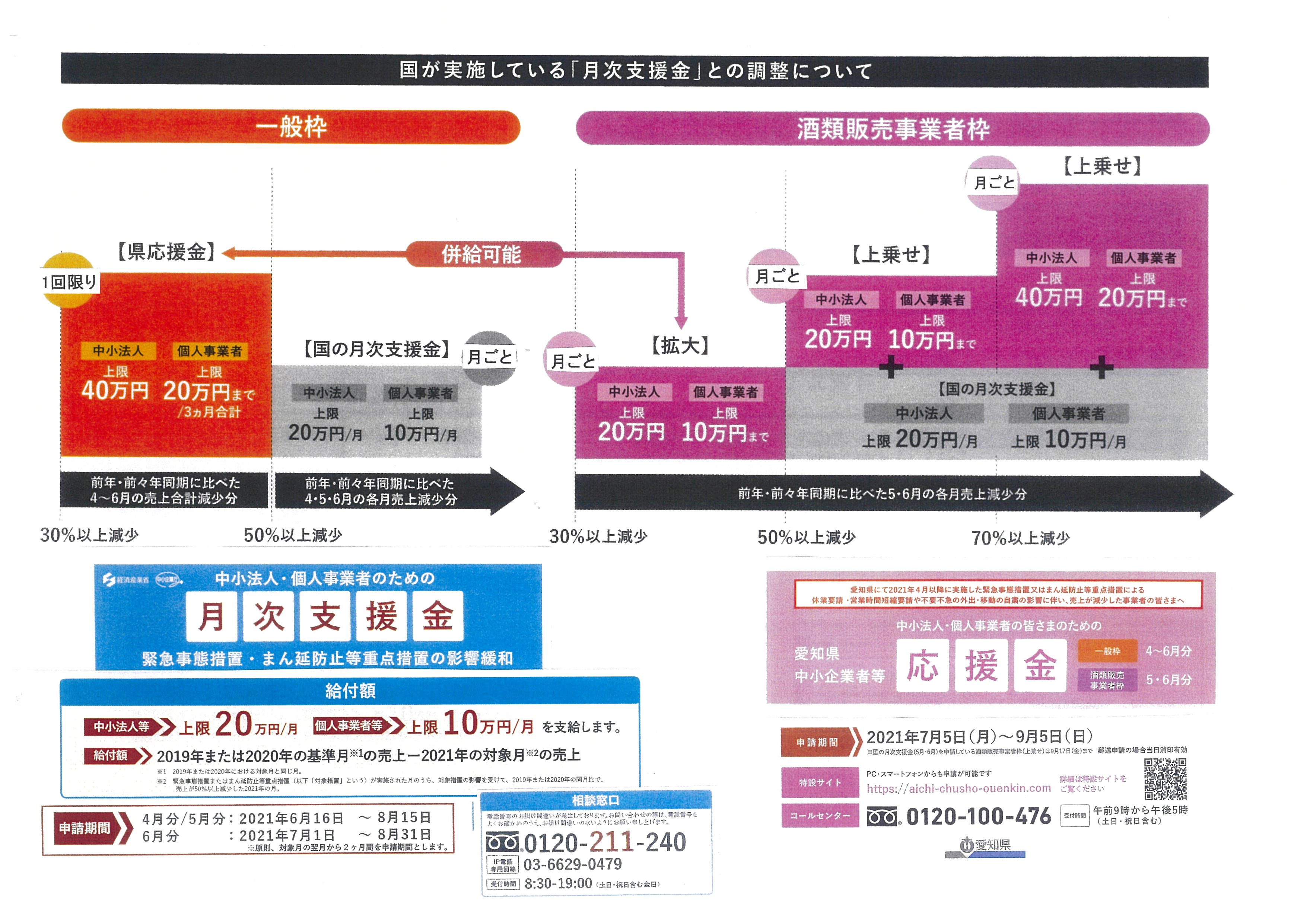 「愛知県中小企業者等応援金」と国が実施している「月次支援金」との調整について