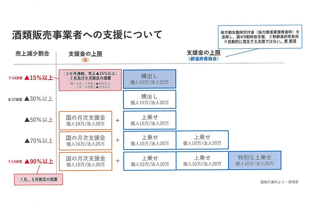 7月14日国税庁より酒類販売業者への追加支援策が公表されました。