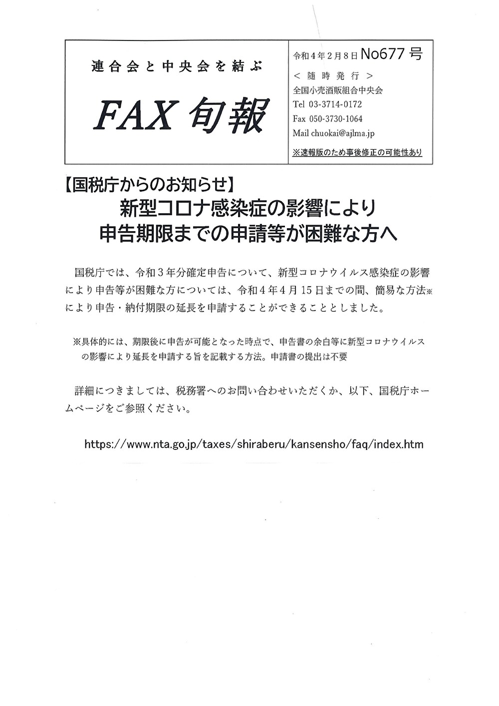 ◆FAX旬報No677号 【国税庁からのお知らせ】