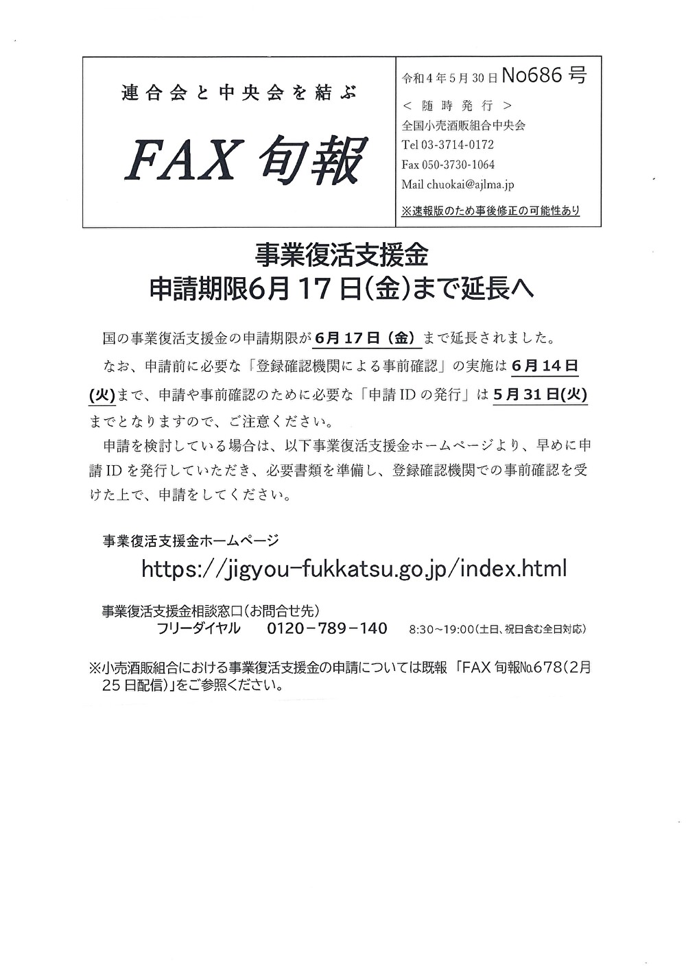 FAX旬報No674号 事業復活支援金申請受付開始について