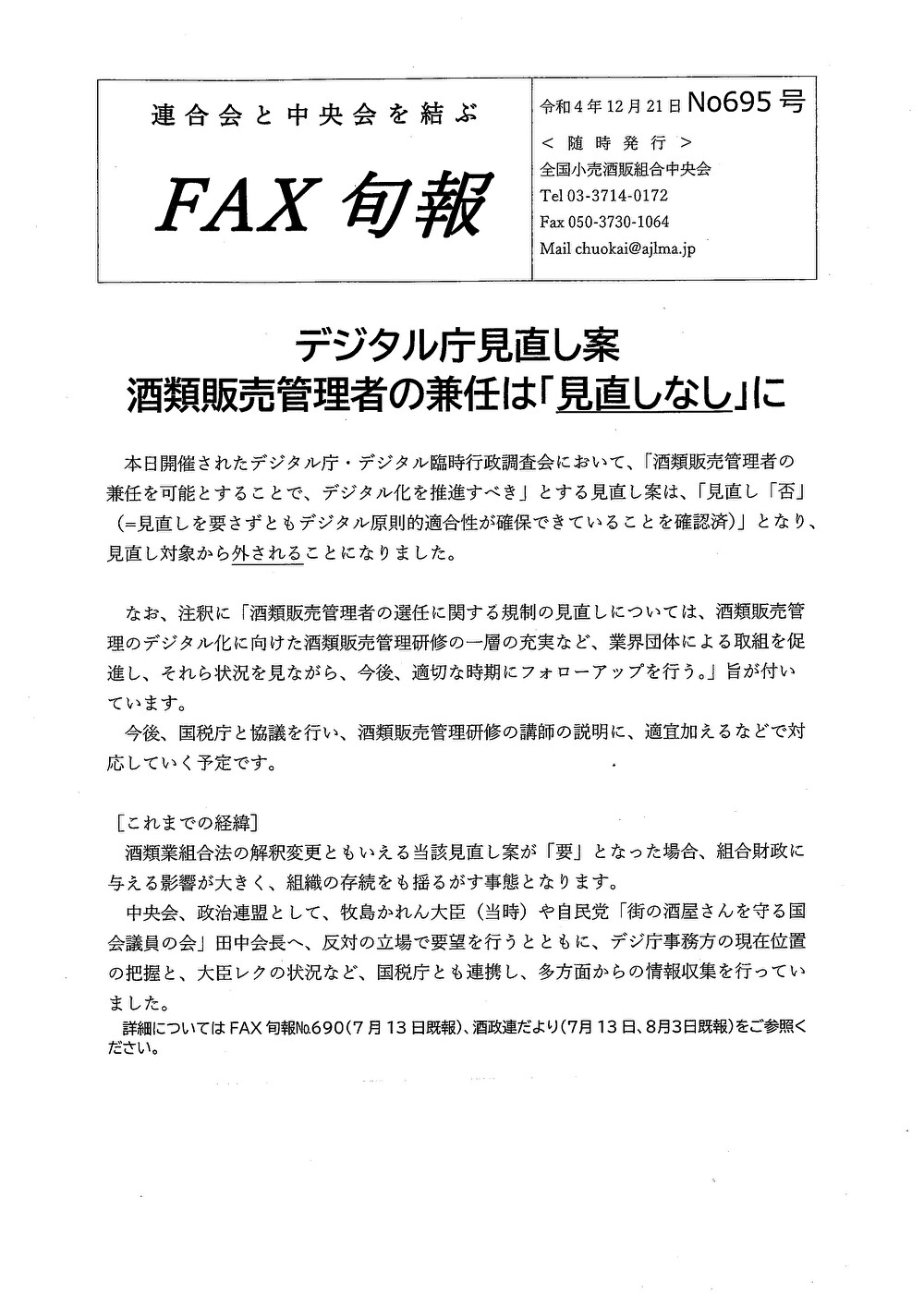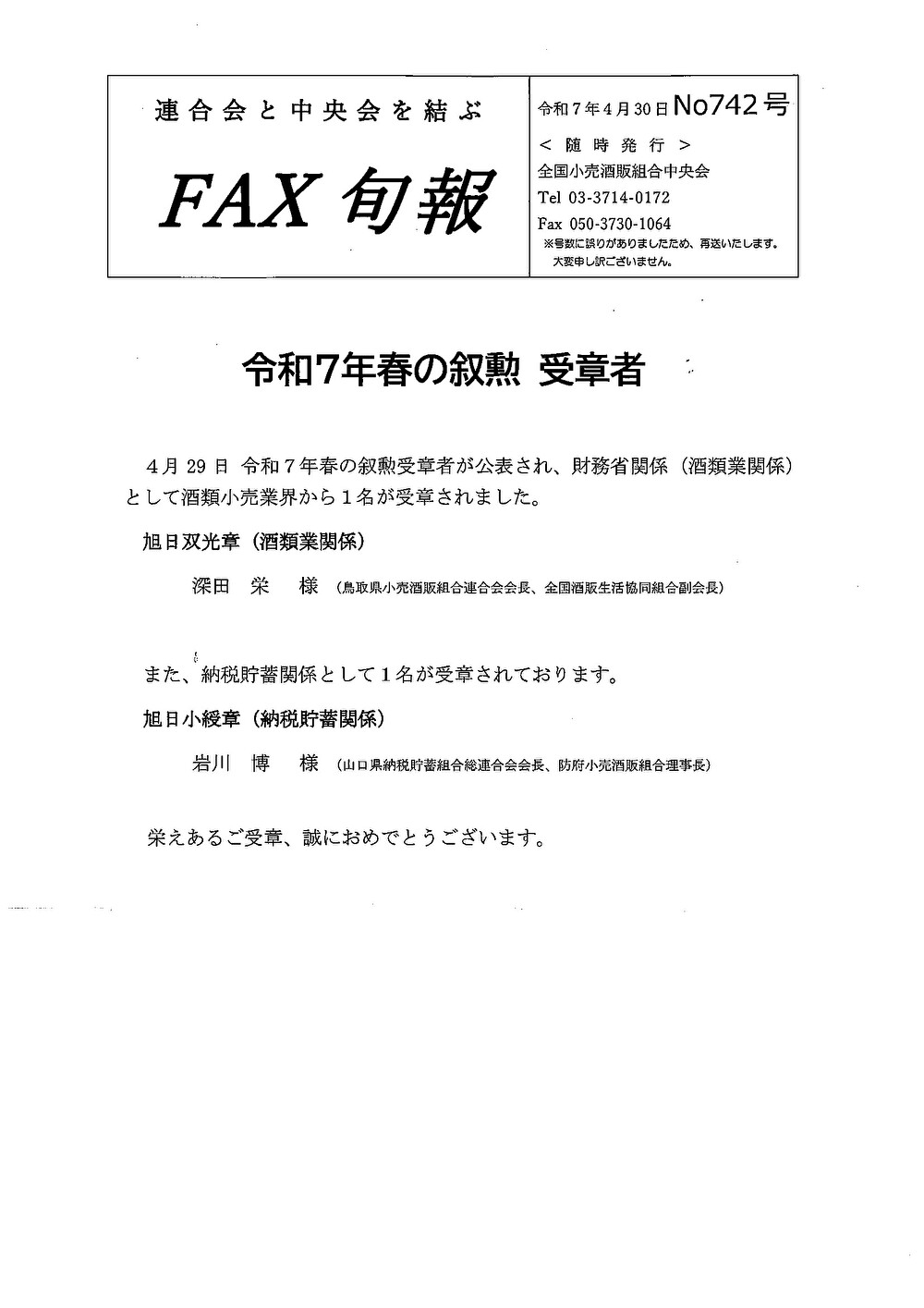 ★FAX旬報 No659号 【コロナ室・国税庁】酒類取引停止に言及した依頼文を廃止、
