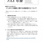◆FAX旬報No706号【国税庁・公取委からのお知らせ】インボイス制度実施に向けた公取委による注意事項について公正取引委員会では、インボイス制度の実施に向けて、独占禁止法違反につながるおそれのある事例が複数確認されていることから、その業態や事例とともに「独占禁止法・下請法上の考え方」を公表しています。しょうさいにつきましては、↓の添付文書1・2をクリックしてご確認下さい。添付文書1添付文書2また、免税事業者のインボイス制度に関する相談内容に応じて、税理士による無料オンライン相談など各種相談先を紹介する「中小企業・小規模事業者インボイス相談受付窓口」が開設されているほか、ナビダイヤル(電話)による相談窓口も設置されています。詳細につきましては、以下のホームページをご参照下さい。●中小企業・小規模事業者インボイス相談受付窓口