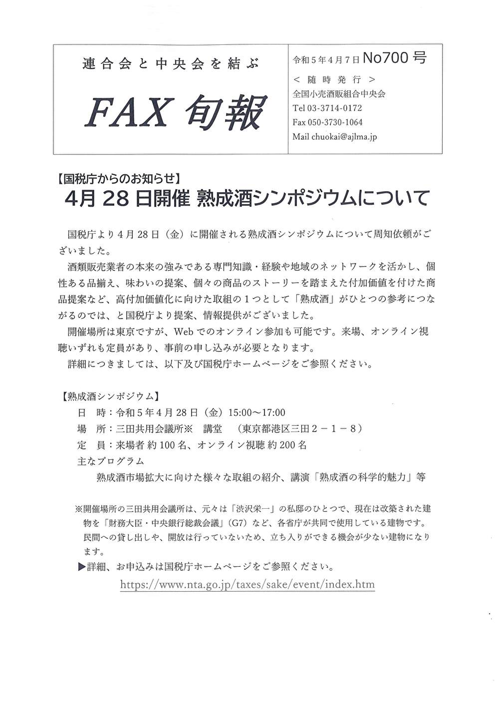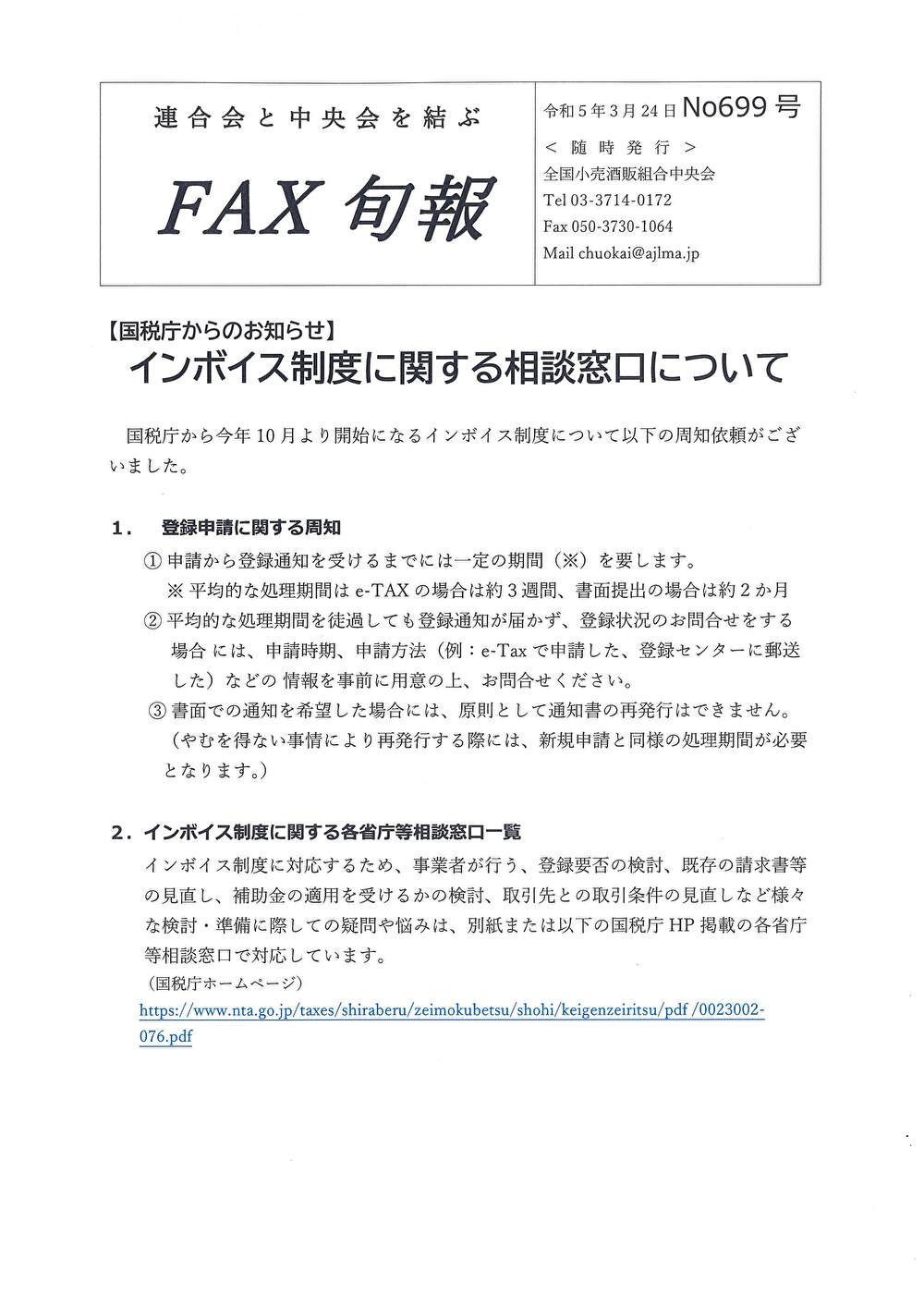 ◆FAX旬報No699号 【国税庁からのお知らせ】