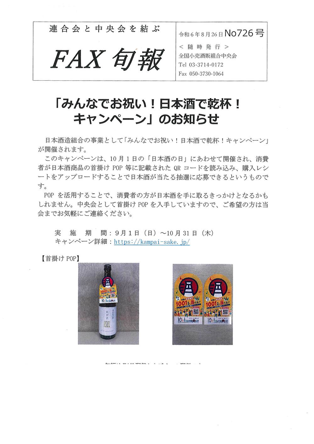 ◆FAX旬報No726号 「みんなでお祝い!日本酒で乾杯!キャンペーン」のお知らせ