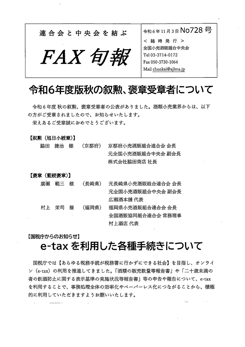 FAX旬報No728号 令和6年度版秋の叙勲、褒章受章者について