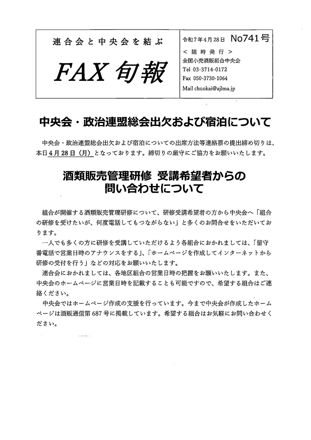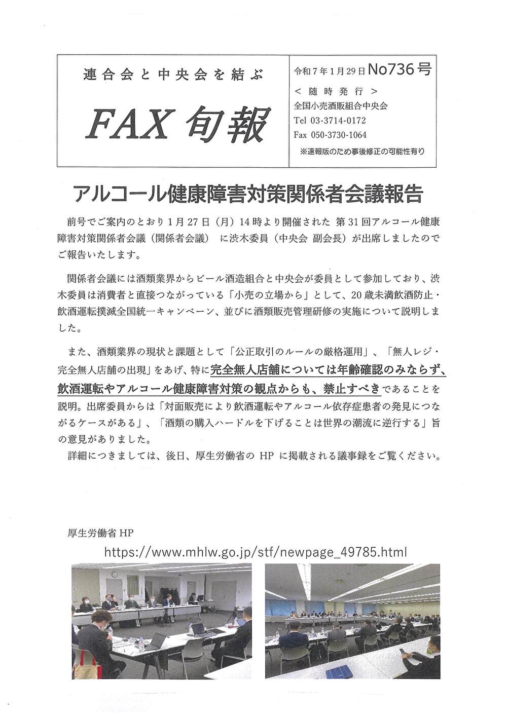 詳細につきましては、FAX旬報No735号をクリックしてお読み下さい。