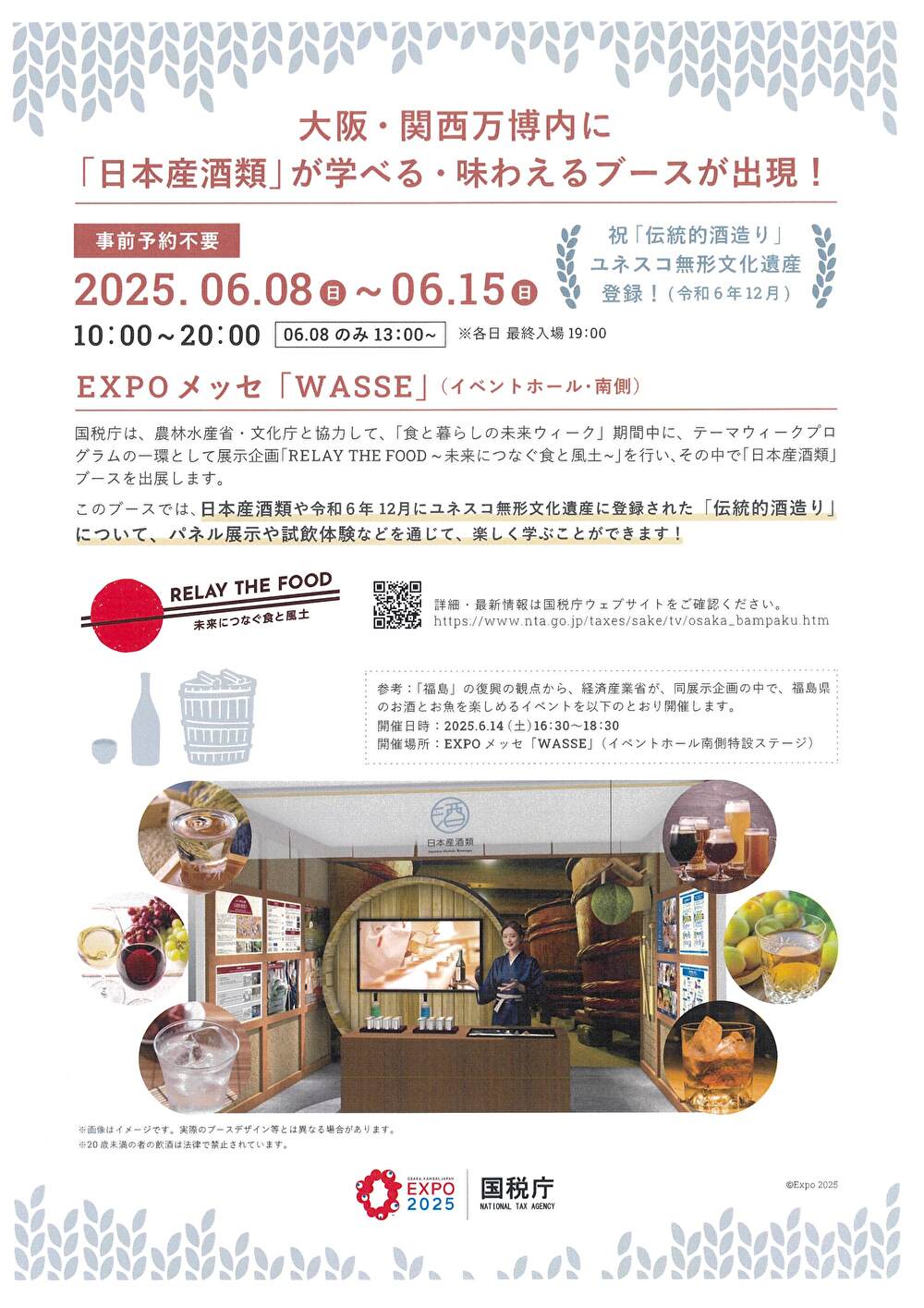 国税庁より「大阪・関西万博における取組について」の連絡がありました。詳細につきましては、↓の案内をご参照ください。