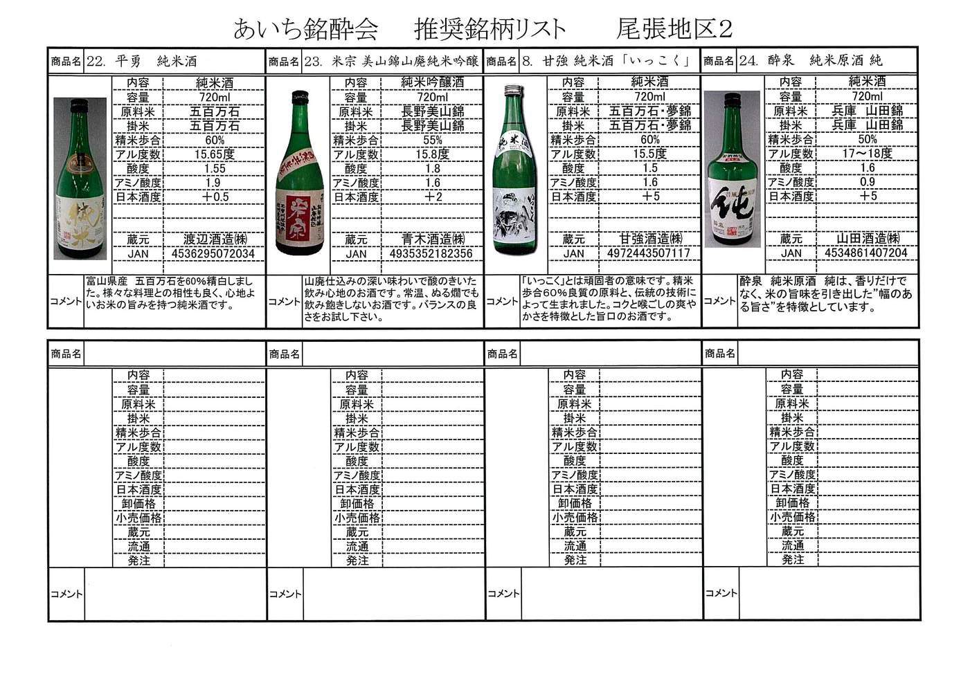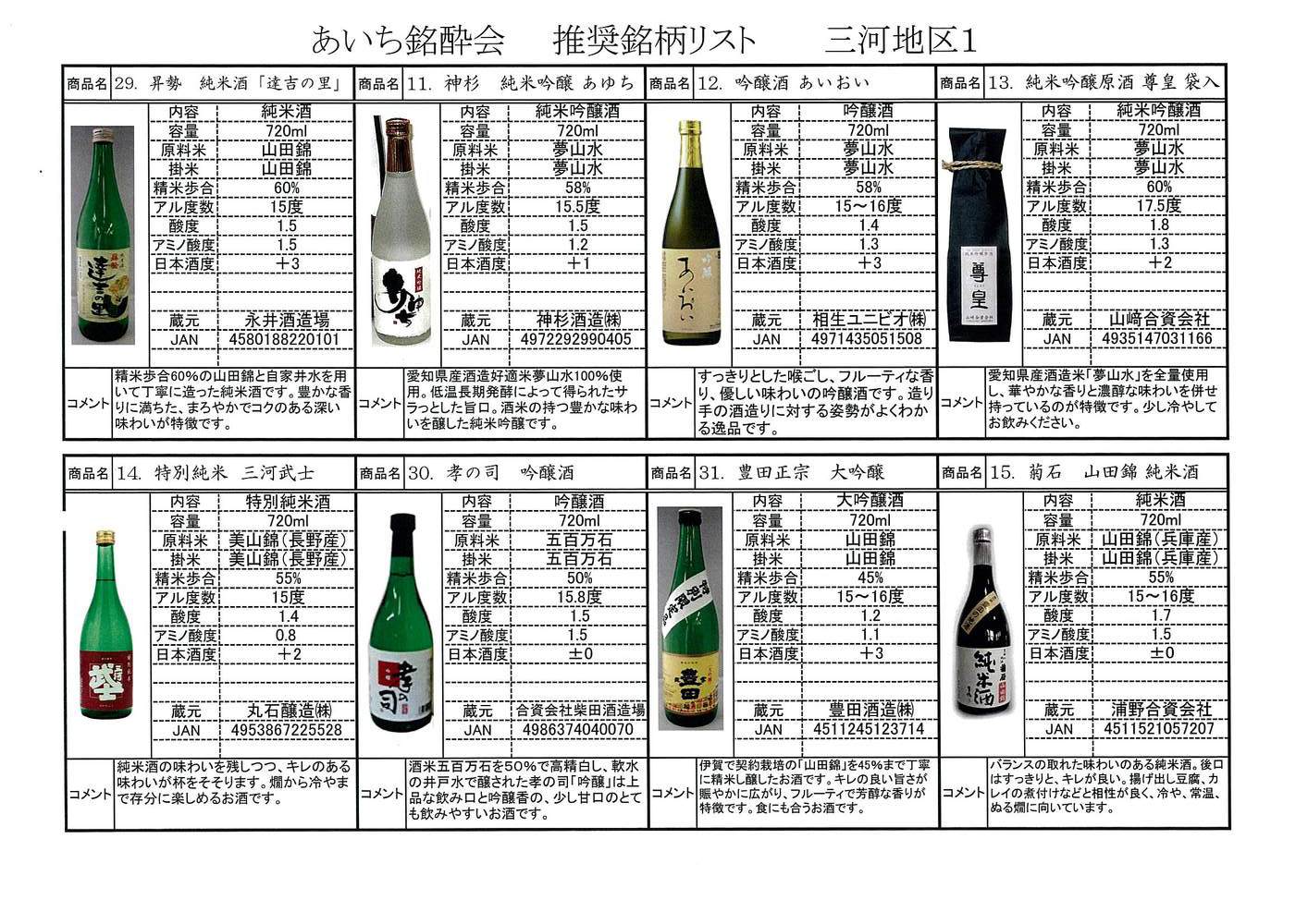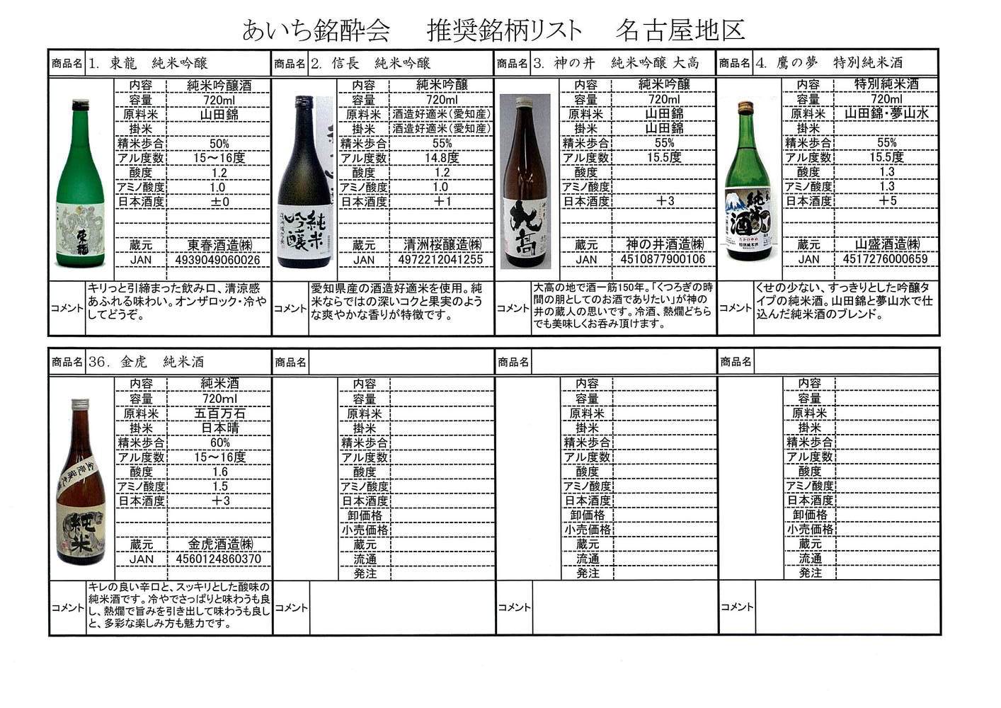 取扱商品は、「日本酒がこんなに美味しいものか」と消費者が見直しをして戴けるような本来の日本酒の酒質の特定名称酒で、家庭用冷蔵庫にも入る720mlサイズを設立理念に賛同を得た県内36蔵の各蔵一銘柄を「あいち銘酔会 推奨品」として販売いたします。商品には、お客様にアピールする為に『あいちの清酒「うまい!」がここにある』の首掛を添付いたします。