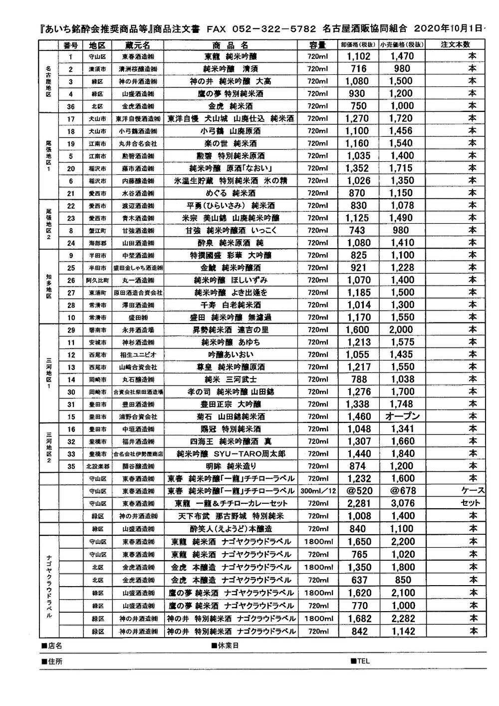 ご注文は「あいち銘酔会推奨商品等」商品注文書をクリックしてプリントアウトしてお使い下さい。