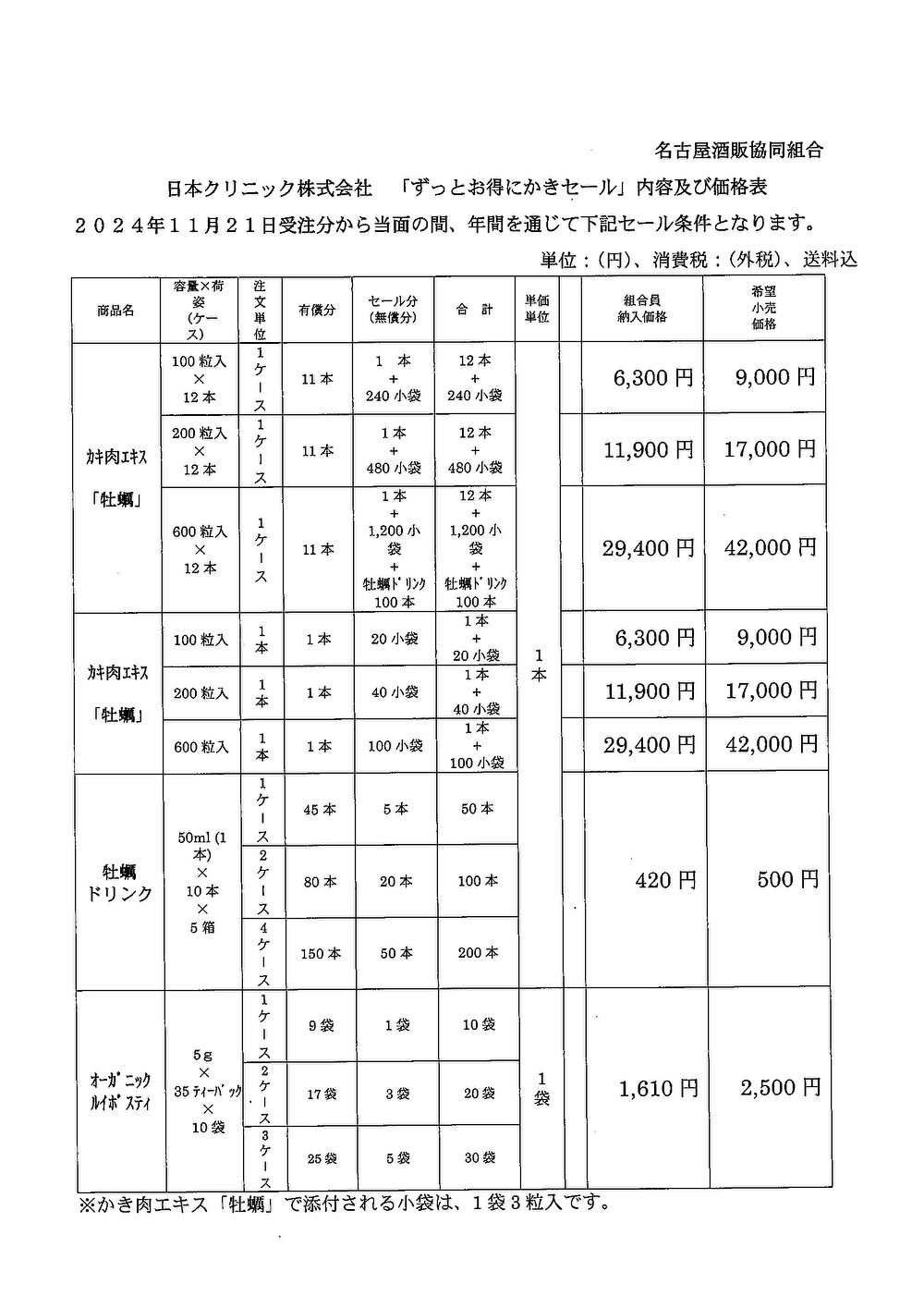 商品ラインナップ及び価格、発注ロット等につきましては↓の価格表及び
