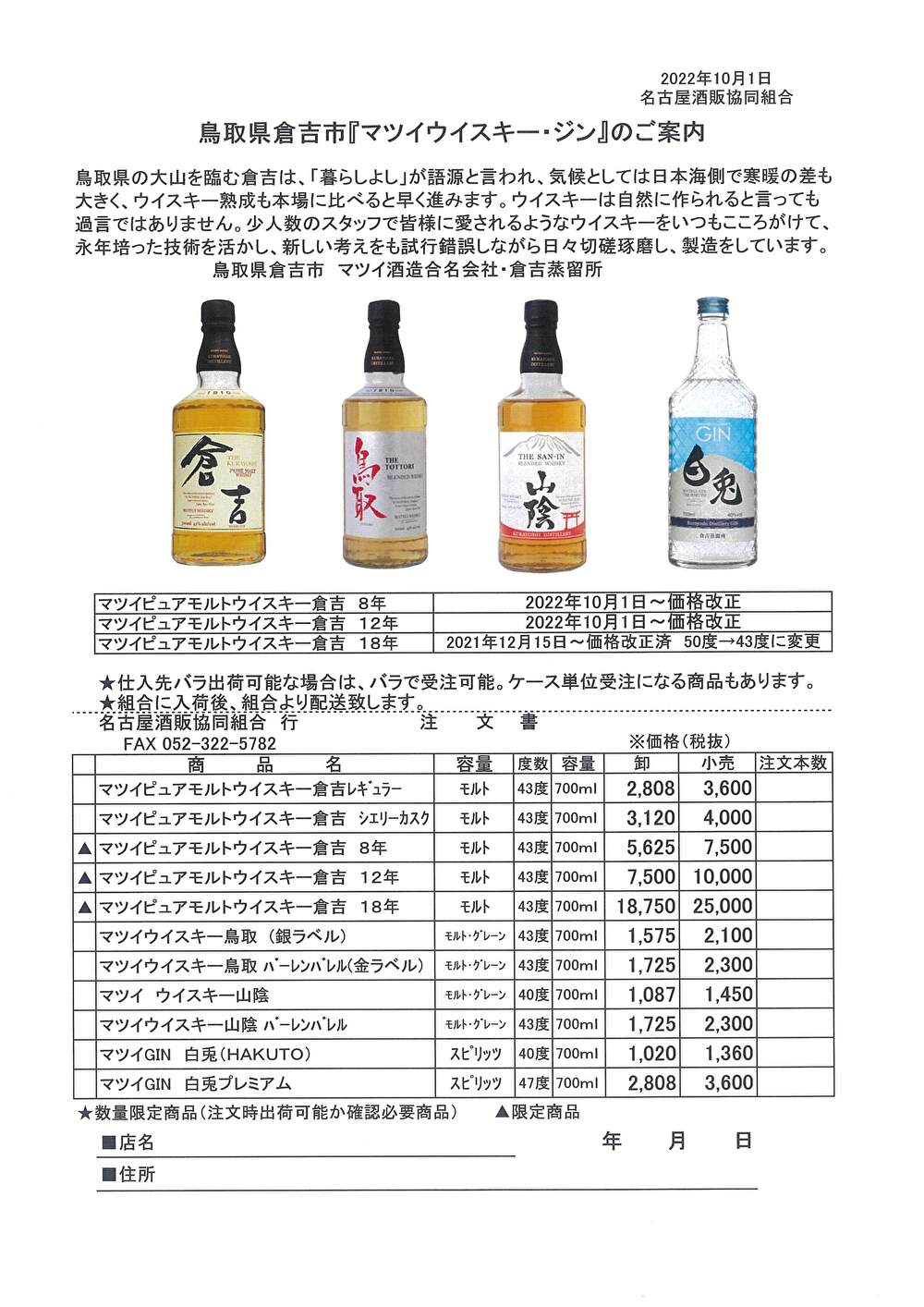 鳥取県倉吉市「マツイ ウイスキー・ジン」の案内 R4.8.30