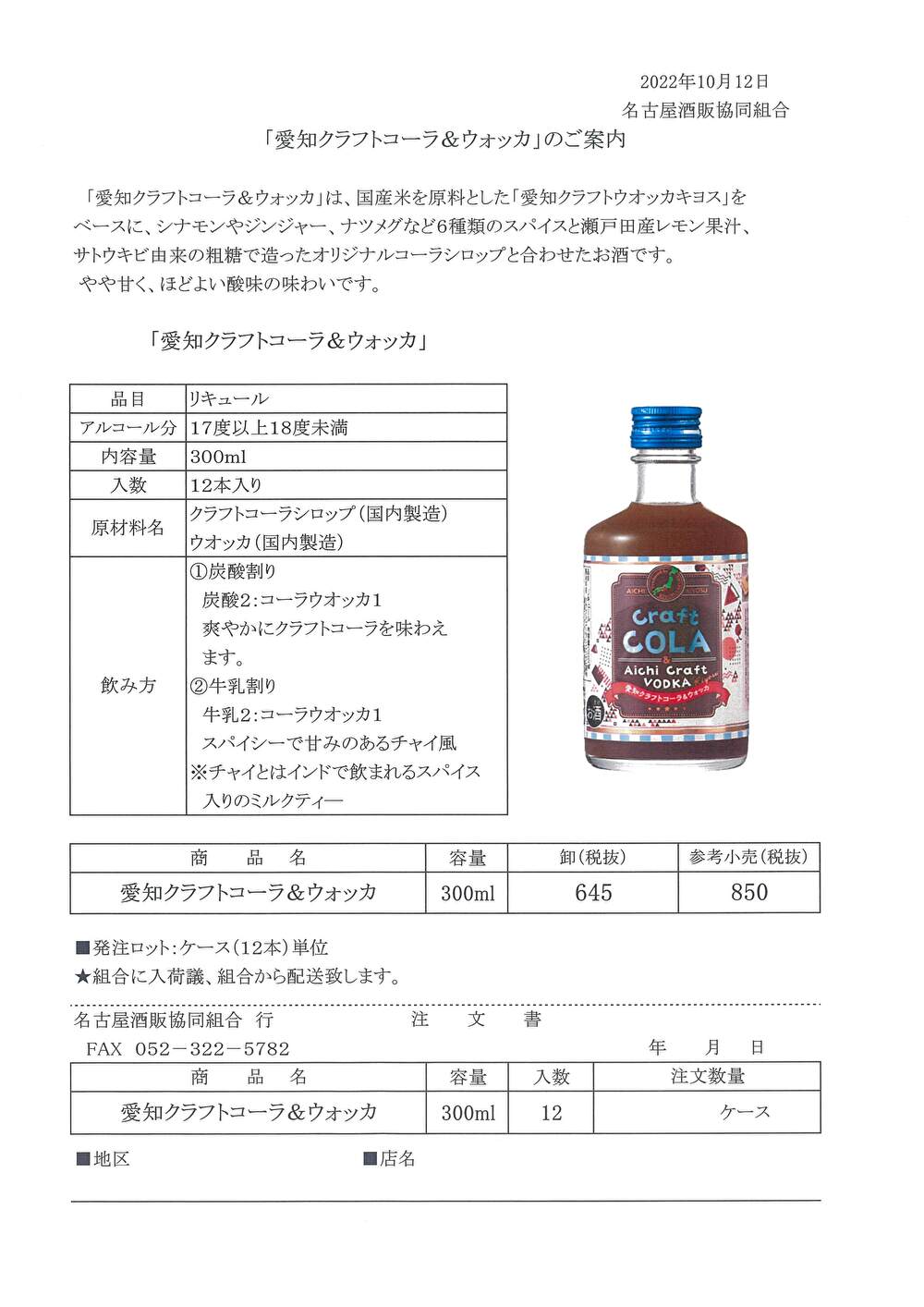 「愛知クラフトコーラ&ウォッカ」の案内 R4.10.12