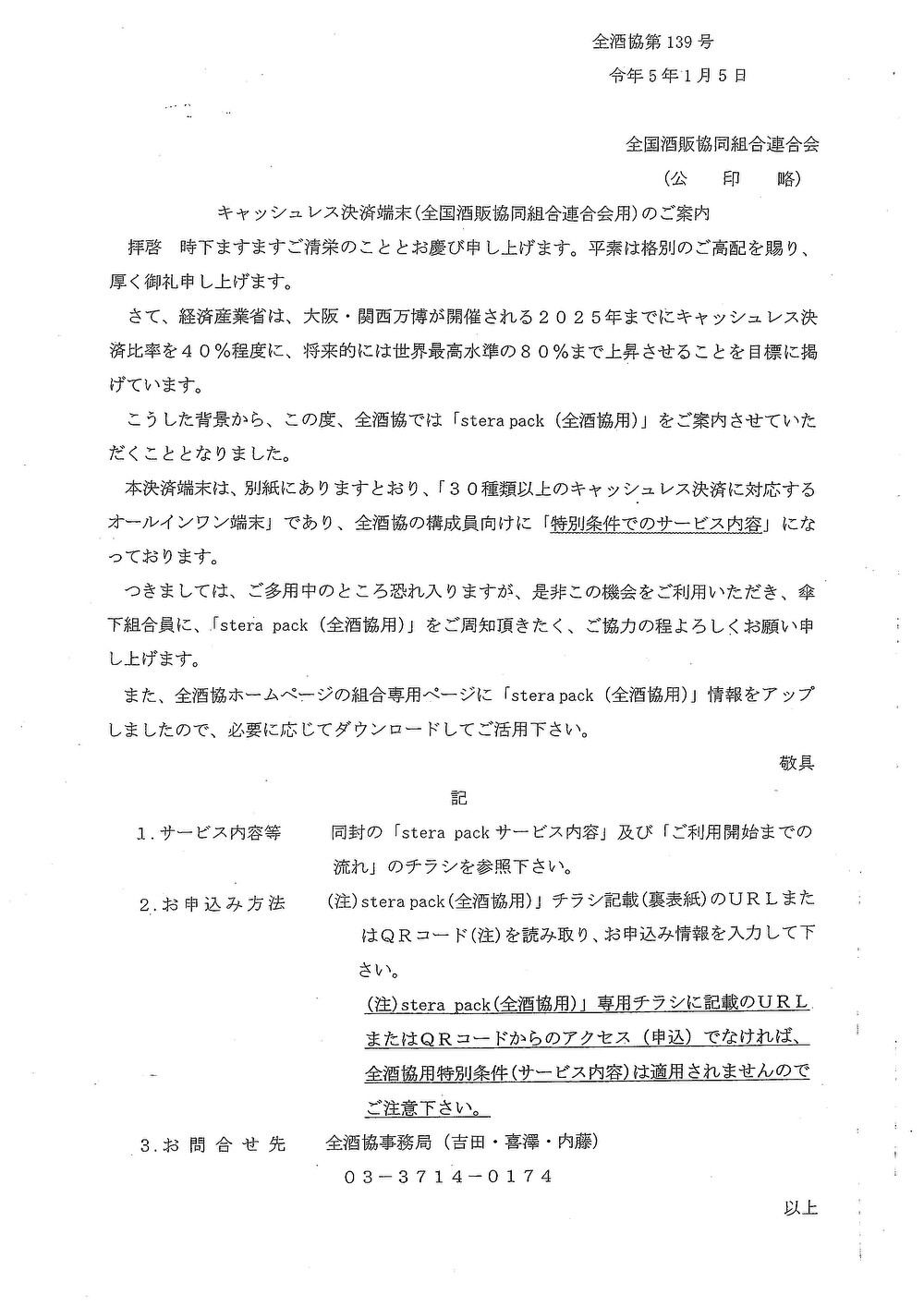 キャッシュレス決済端末(全国酒販協同組合連合会用)のご案内 R5.1.10