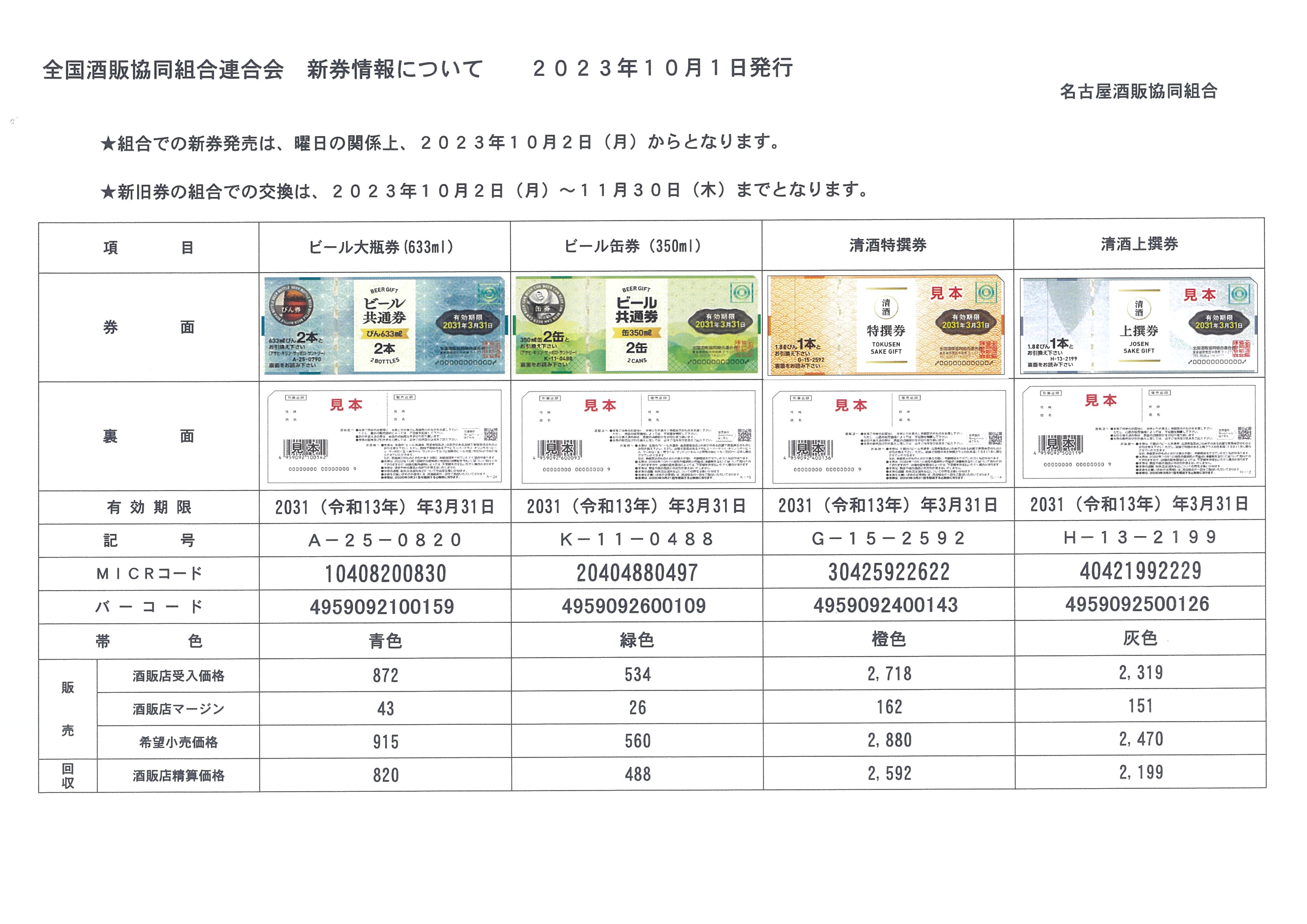 全国酒販協同組合連合会 新券情報について R5.7.3