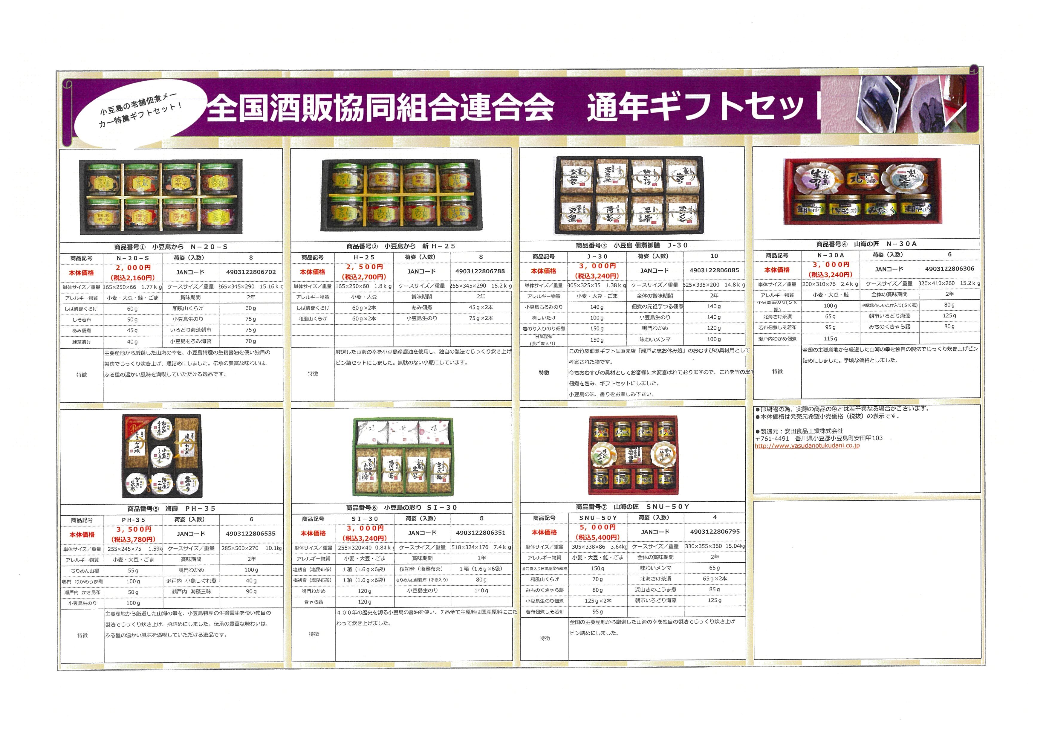 全国酒販協同組合連合会より、「小豆島の老舗佃煮(安田食品工業株式会社)」通年ギフトの案内です。
